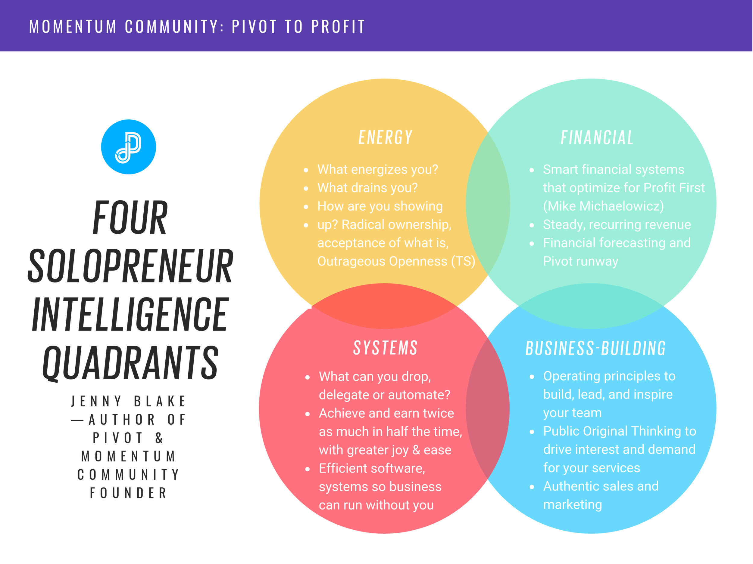 In addition to serving my corporate clients—which include companies like Google and Microsoft—with large-scale Pivot licensing and global coaching programs, Momentum is the only place that I’ll be investing my solo+preneur heart-based business coaching time and energy in 2020, and the most powerful, cost-effective way to work with me.